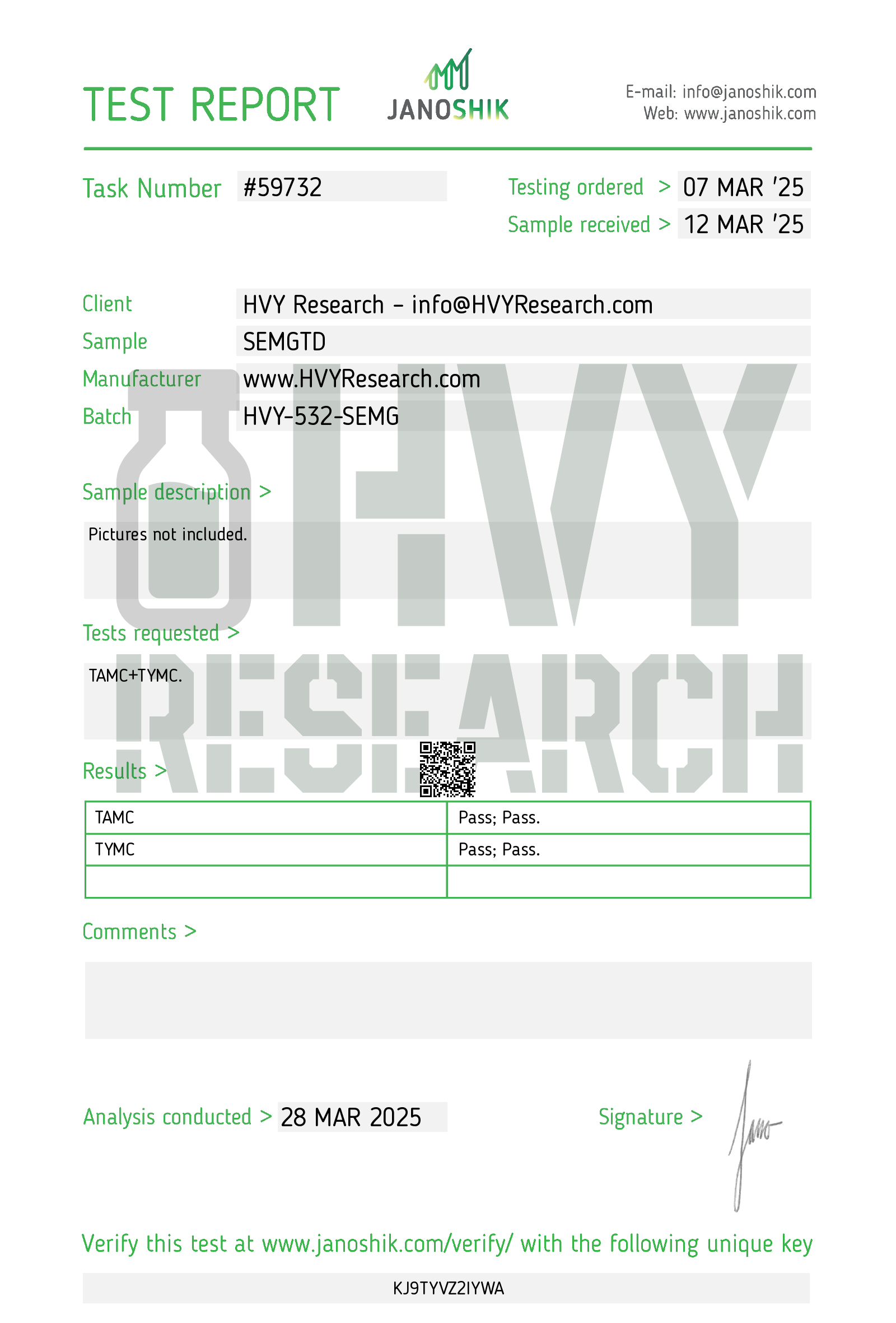 SEMGTD is a synthetic GLP-1 receptor agonist peptide provided as a sterile, lyophilized powder for use in non-clinical research environments. This analog is formulated for extended stability and albumin-binding activity, making it suitable for in vitro investigations into incretin signaling, receptor activation, and related metabolic pathways.